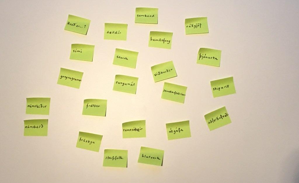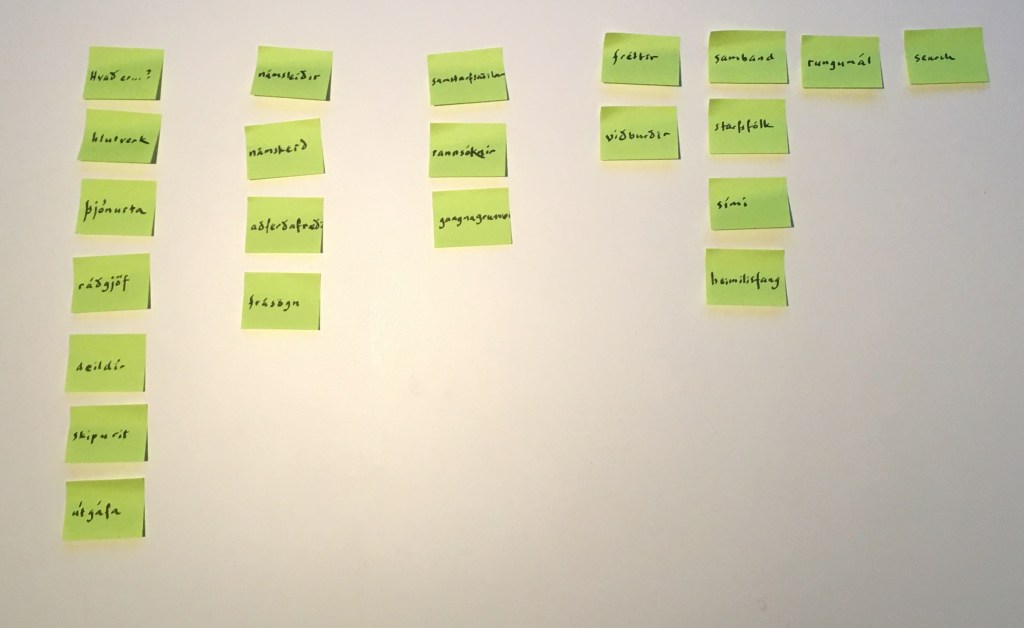 Below are the post-it notes I used to categorize the Félagsvísindasvið website. Below that is the Excel document to detail the categorization.
